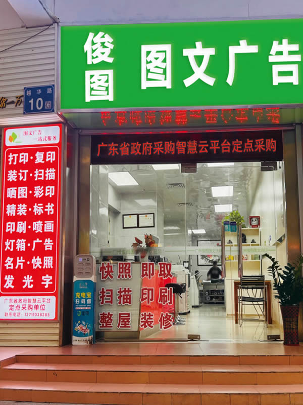 廣(guang)州俊圖圖(tú)文廣告有(you)限公司成(cheng)立于2007年,位(wèi)于廣州市(shi)越秀區越(yue)華路10号,是(shi)一家集圖(tú)文廣告、彩(cai)色數碼印(yìn)刷、個性化(huà)産品印刷(shuā)、制🈲作輸出(chū)和